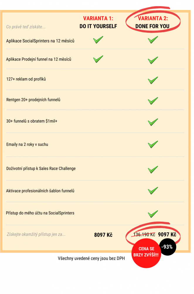 Rekapitulace toho co obsahuje VARIANTA 2: DONE FOR YOU